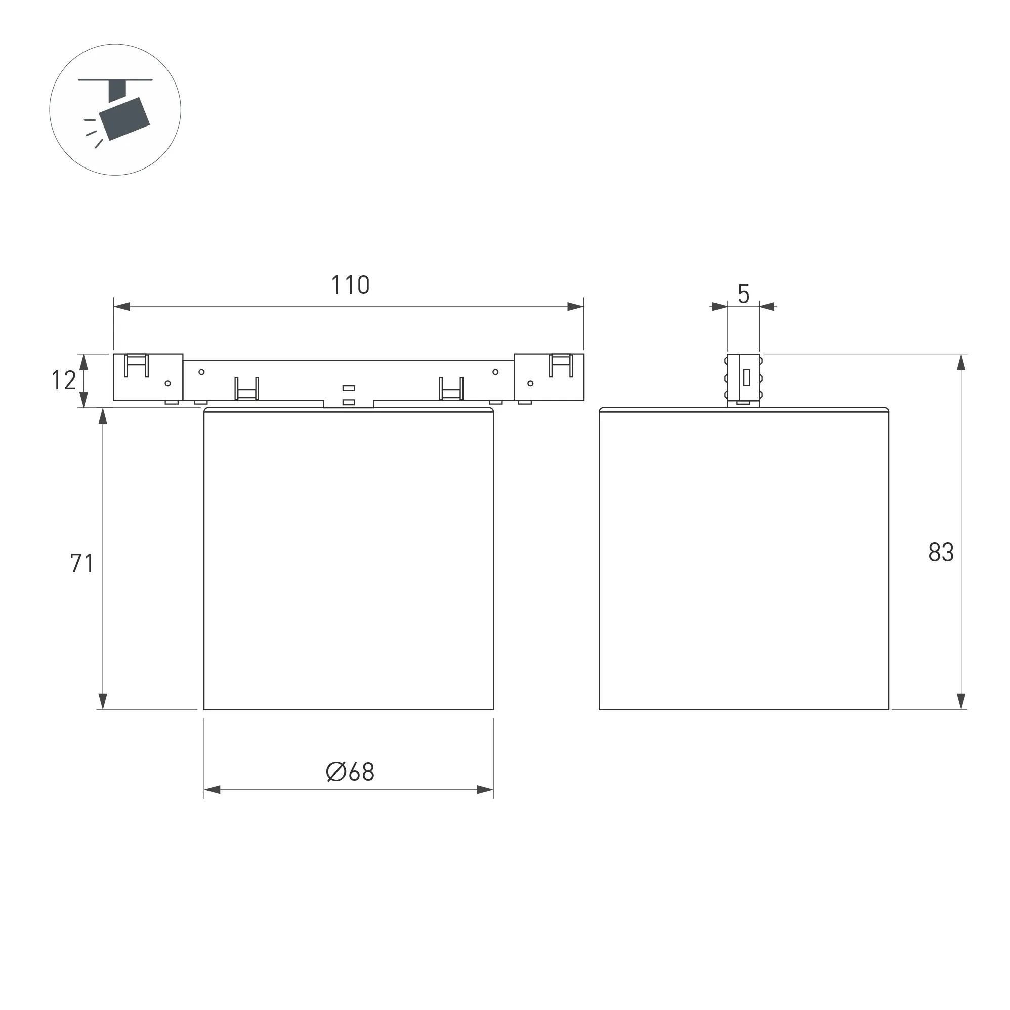 Светильник для магнитных треков MAG-MICROCOSM шириной 11 мм. Мощность 7 Вт, св. поток 683 лм, 107 лм/Вт, дневной 4000 K, CRI>92, угол 36°, напряжение питания 24 В. Бронзовый фигурный корпус из алюминия, экран поликарбонат, степень защиты IP20. Габариты общие:109 х 68 х 82 мм. Габариты светового модуля:Ø68 х 71 мм. Габариты адаптера: 110 х 5 х 11,6 мм. Монтаж на трек MICROCOSM. Пульсация <1%.